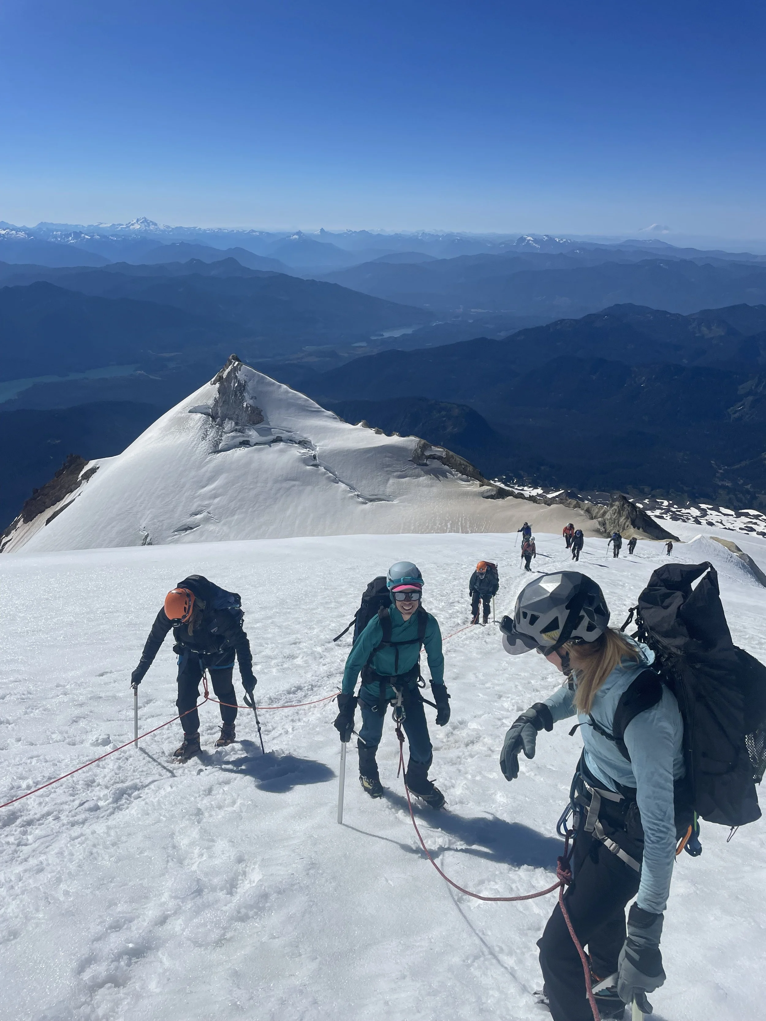Mount Baker (Koma Kushan) is a 10,781-foot glaciated volcano in the North Cascades of Washington that provides excellent training ground for learning snow/ice climbing technique and glacier travel skills. The Mt Baker Skills & Climb is the ideal program for those looking to learn the ropes of glacier mountaineering and tick off the tallest summit in the North Cascades (and third highest in Washington State!). This program typically takes place over 3 days and 2 nights, but we offer custom 4-day climbs for those seeking additional skills practice or who want a bigger window to increase their chance at a successful summit bid.